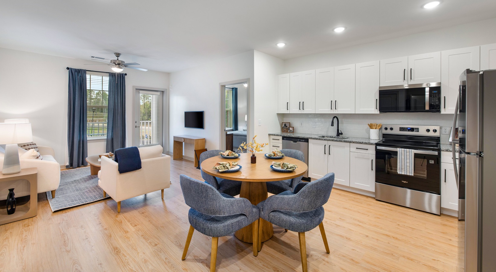 Come home to comfort and convenience as you walk into your bright, spacious 55-plus apartment home in Apex, NC, after an active day. Stay in and prepare a healthy meal in your modern open kitchen or join friends for a barbeque. Whether you enjoy movie night, a quiet evening walk with your furry friend, or lively conversation around the fire pit, there are plenty of choices to feel good and create new memories at our Summit Pines active adult apartment community—an inviting option for senior housing in Apex that blends lifestyle and community. Take a look through our photo gallery to get a feel for these senior apartments in North Carolina. You'll see how easy it is to enjoy life here, whether you’re relaxing at home or out and about.